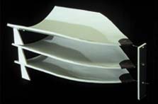 Wire attachments allude to lightness of paper, while subtle tray curves accommodate the flexibility of paper. Triangular tray reveals document corners to quicken search.