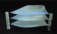 2. Plexiglass prototype explores translucency of frosted material, giving each tray the form of a paper airplane.