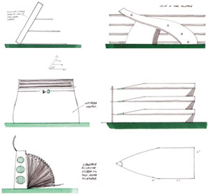 Sketching Initial sketches explore stacking and filing of paper in relation to ease of accessibility and beauty of form on the desktop.