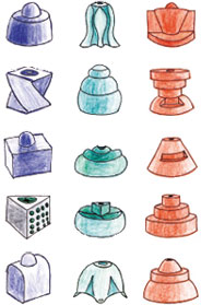 Sketching Initial sketches explored juxtapositions of geometric forms. Clear recognition of where to insert pencil and empty shavings, led to an asymetrical, graspable design. Grip modified to allow for quick and smooth exposure of shavings chamber.